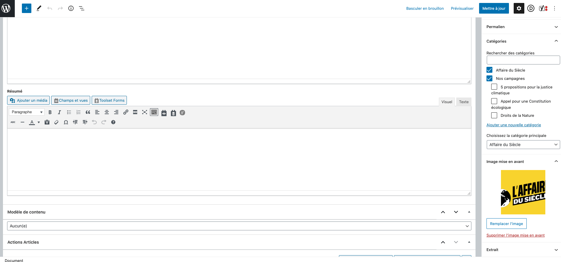 Je vous invite également à mettre une image à la une de l’action afin de cet élément soit présent sur les pages actions et que ce soit tout clean.